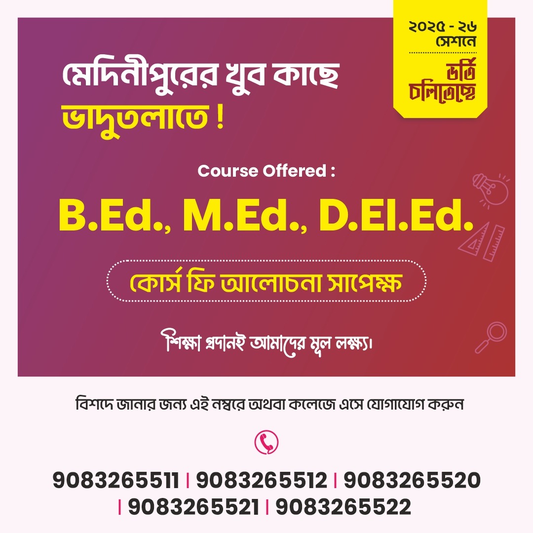With that objective Gopsai Avinandan Sangha primary Teachers Training Institute had started their journey in the year 2005. We at GAS PTTI strive to impart practical knowledge of teaching profession to our students with due care and scientific process with a hope that the same will be delivered to their little pupils in their professional life.